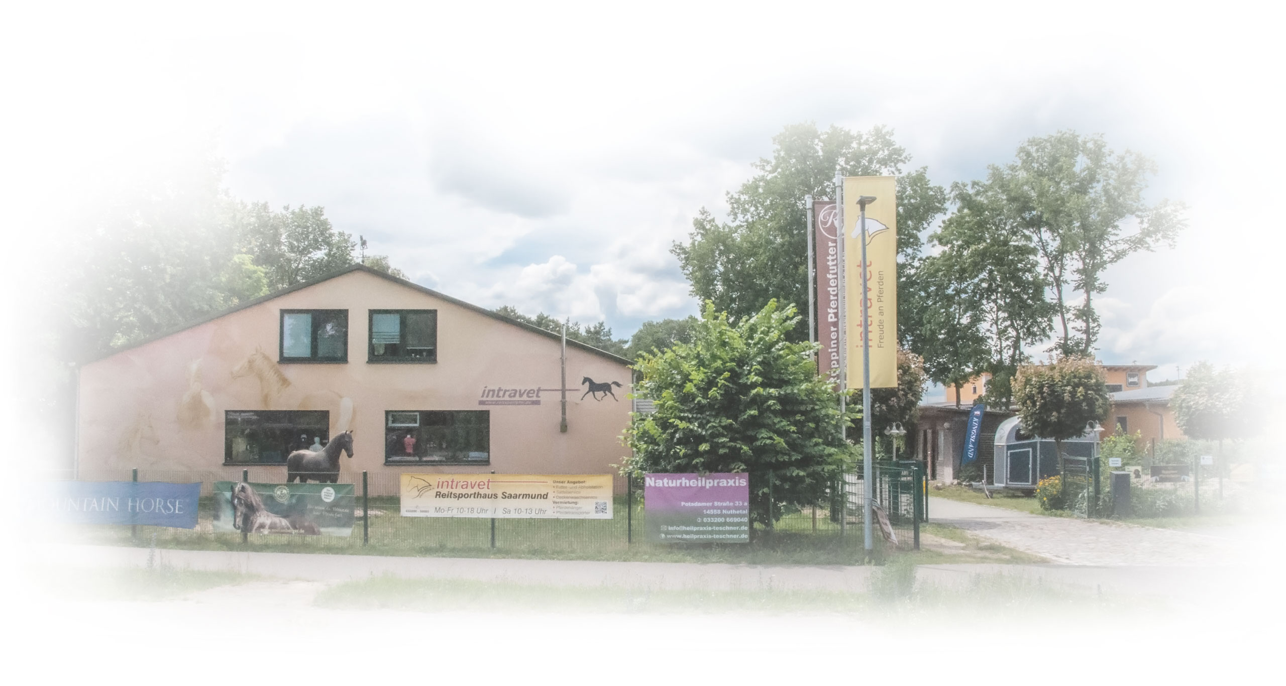 intravet: Der Reitsport-Hotspot, südlich von Potsdam im charmanten Nuthetal, genauer gesagt im gemütlichen Ortsteil Saarmund. Hier haben wir uns seit 2003 ein schönes Zuhause geschaffen. In unserem Ladengeschäft finden Sie nicht nur Tierfutter satt, sondern alles, was Ihr Reiterherz begehrt. Wir sind nicht nur vor Ort präsent - als intravet betreiben wir Online gleich mehrere Shops für alle Reitsportfreunde und Tierliebhaber.